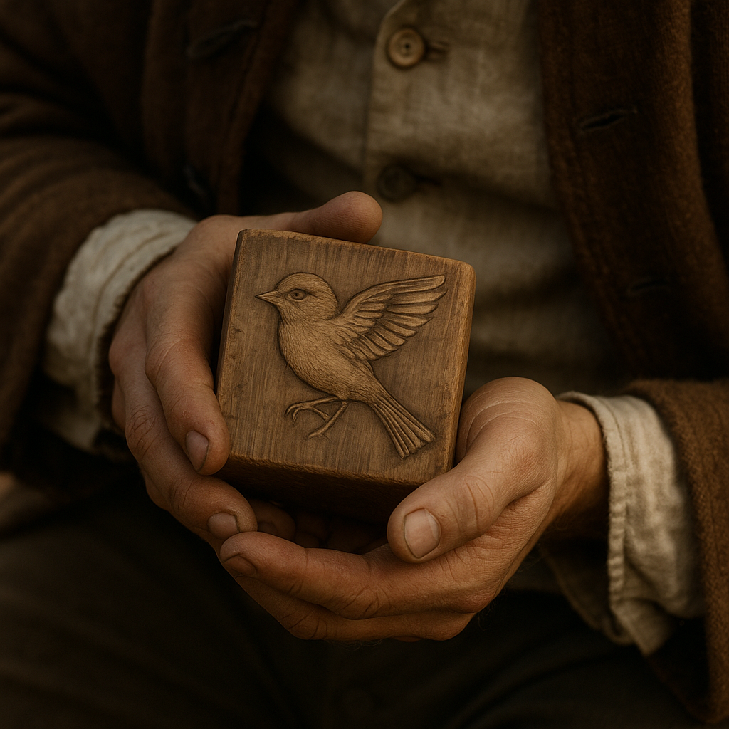 Johann (Henry’s Father) first began carving a sparrow into that small wooden block. He carried it in his bag as they marched toward battle. He shared with Henry how each precise cut was a pledge of endurance. After his daring escape, Henry, seized the whittling knife. He completed the tiny bird’s wings. Its final contours whispered a promise: “Survive.”